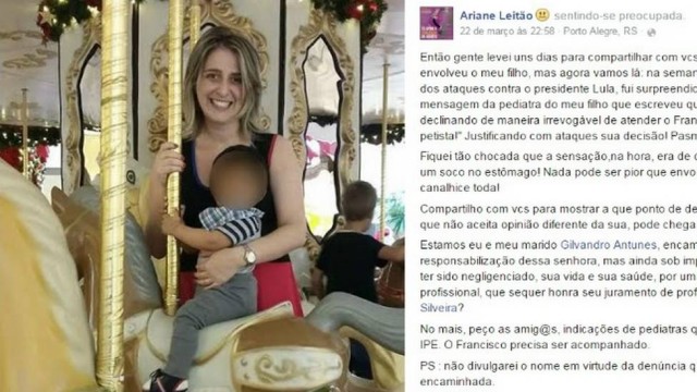 Pediatra que negou atendimento a bebê de 1 ano porque mãe da criança é petista terá de se explicar. Conselho Regional de Medicina estabeleceu prazo de 15 dias para que ela apresente defesa