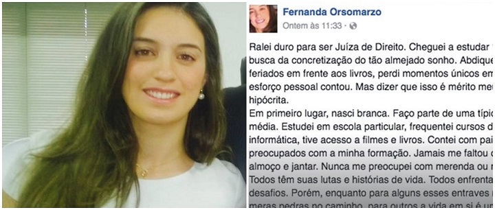 Juíza usa sua própria história para desmascarar as falácias da tão propalada meritocracia. Entre os pontos abordados, Fernanda Orsomarzo afirma que se esforçou para chegar ao cargo que tem hoje, mas jamais teria conseguido se não tivesse acesso a uma série de privilégios. Confira a íntegra do texto que viralizou