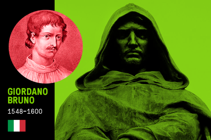 Filósofo, matemático, astrônomo, poeta e teólogo. O frade italiano nascido em 1548 entrou para a história após questionar abertamente crenças fundamentais da Igreja Católica, como a existência de céu e inferno, a danação eterna e a concepção de Cristo por uma mulher virgem.