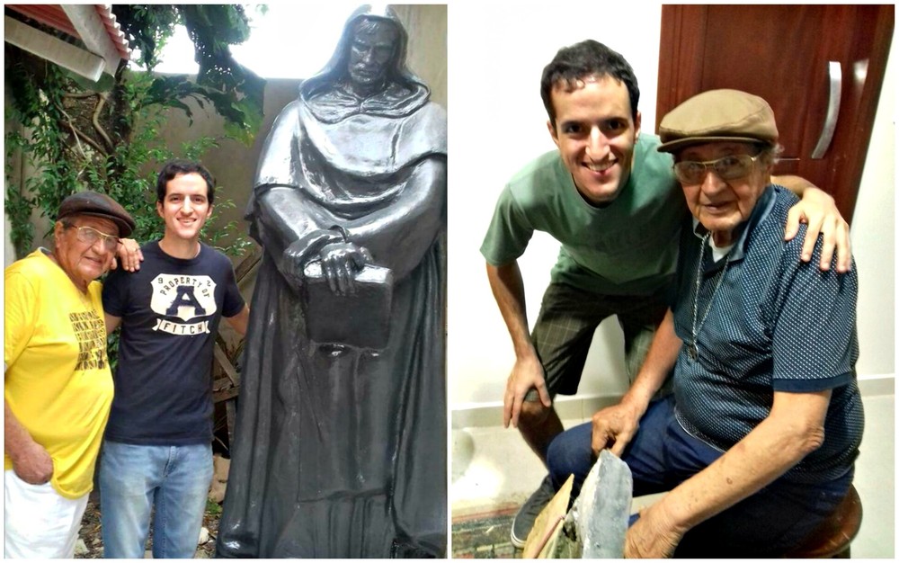 “A maioria não entende, mas eu o conheço há muito tempo. Dá para acreditar que foi reencarnado Giordano Bruno nele. Não posso contar mais, a única coisa que posso dizer é que já terminou os livros que ele [Giordano] deixou inconcluso. Queria falar ao seu pai e mãe que não se preocupem, ele está bem e vem apresentar ao mundo esse projeto lindo, fantástico”, disse o escultor