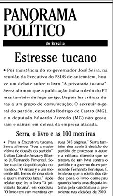 José Serra sentiu o livro, embora diga que o que há o “A Privataria Tucana” seja “lixo, lixo, lixo”