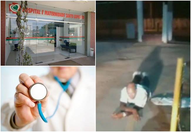 Homem morre após ter atendimento negado em porta de hospital. Dois profissionais de saúde, um com as mãos no bolso, observaram a vítima agonizar e pedir ajuda e nada fizeram
