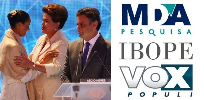 Enquanto os institutos MDA e Ibope colocam Dilma Rousseff com 9 pontos percentuais de vantagem sobre Marina Silva, o Vox Populi diz que a diferença é de 18 pontos. No entanto, toda essa vantagem apontada pelo Vox para a candidata do PT não está relacionada a uma forte ascensão numérica de Dilma, mas ao declínio de Marina. Se Dilma está com 40% das intenções de voto no Vox Populi, no Ibope ela conta com 38% – oscilação dentro da margem de erro de dois pontos. Isto é, de acordo com a margem de erro Dilma pode ter 40% ou 38% tanto no Vox quanto no Ibope. Neste quesito, só há incompatibilidade fora da margem de erro entre MDA e Vox Populi.
