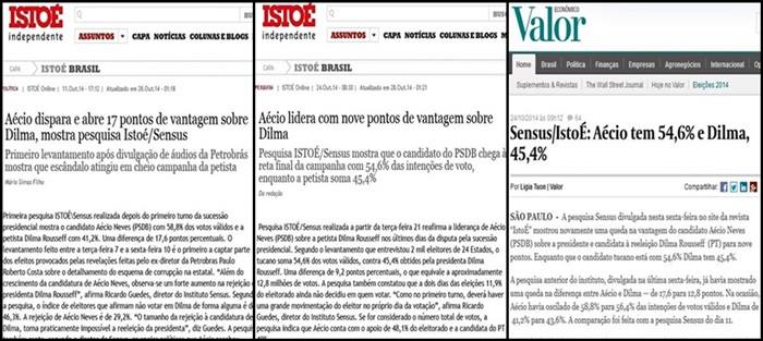 O Sensus é o grande derrotado da eleição e deve explicações ao Brasil. O instituto, que chegou a colocar Aécio Neves 17 pontos a frente de Dilma neste segundo turno e, há quatro dias, disse que o tucano venceria a eleição com 9 pontos de folga, apontou em sua última pesquisa vitória do tucano com cinco pontos de vantagem sobre Dilma: 52,7% a 47,9%. O resultado de Aécio acabou ficando mais de quatro pontos abaixo, e o de Dilma, três acima. O diretor do instituto, Ricardo Guedes, chegou a afirmar que a reeleição de Dilma era “algo impossível”. As pesquisas do Sensus foram todas contratadas pela revista IstoÉ.
