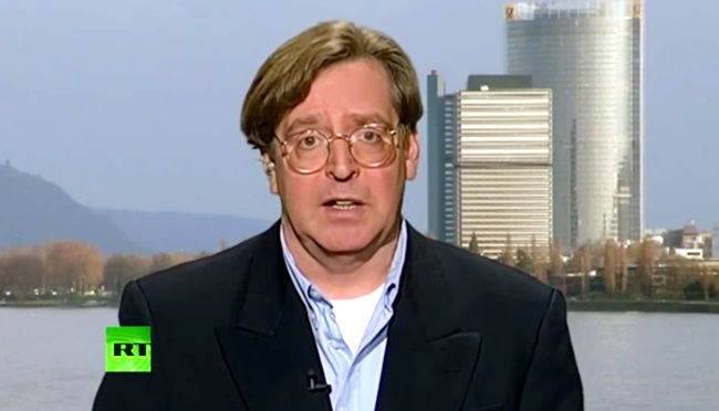 Se você olhar para a mídia alemã, especialmente os meus colegas que, dia após dia, escrevem contra os russos, que estão em organizações transatlânticas, que são apoiados pelos Estados Unidos para fazer isso, pessoas como eu. Eu me tornei um cidadão honorário do Estado de Oklahoma. Por que exatamente? Só porque eu escrevia pró-Estados Unidos. Eu escrevia pro-Estados Unidos e fui apoiado pela Agência Central de Inteligência, a CIA. Por quê? Porque eu tinha que ser pró-americano.