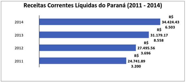 Além disto, Richa sempre pôs a culpa nos repasses do Governo Federal. De fato, a proporção das transferências da União para o Paraná diminuiu se considerarmos seu peso na receita total, no entanto, em números absolutos nos quatro anos houve um acréscimo de 28,4% desta transferência, obviamente que menor do que o grande crescimento das receitas estaduais. Em 2011 as transferências da União significavam 14,83% das receitas correntes líquidas, enquanto que em 2014 foi de 12,21%.