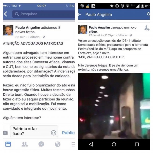 O vendedor de bicicletas Paulo Angelim, de Fortaleza, se gabou em sua página no Facebook de ter organizado a agressão de que foi vítima Stedile, do MST.
