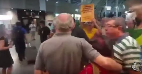 Durante os seis minutos de trajeto até o carro, o líder do Movimento dos Trabalhadores Sem Terra foi chamado de “assassino”, “fascista”, “vagabundo”, “comunista”, “traidor da pátria”. O grupo gritava, repetidamente, a frase “MST vai para Cuba com o PT”.