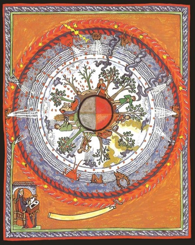 Quando a Primeira Cruzada estava a ponto de chegar a Jerusalém, uma menina chorou pela primeira vez em Bermersheim (Alemanha). Hildegarda de Bingen nasceu em 1098 e se tornou um dízimo. Como décima filha que era, seus pais a entregaram à Igreja. Deixaram-na em um mosteiro de monges de Disivodemberg, o qual mantinha uma ala para mulheres dirigida por Jutta von Spannheim, que se tornaria mãe e instrutora da pequena Hildegarda. Tinha oito anos e havia começado a ter visões aos três, mas só depois dos quarenta começou a escutar uma voz que lhe dizia que escrevesse e desenhasse tudo aquilo que seus olhos e ouvidos alcançassem.