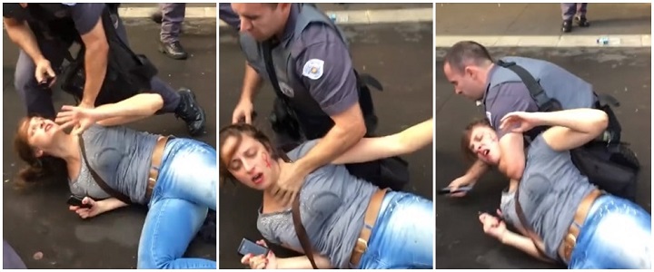 Mulher é covardemente agredida pela PM durante protesto contra Temer