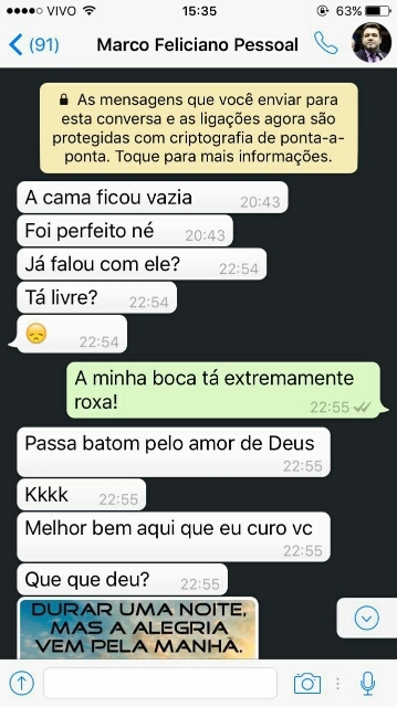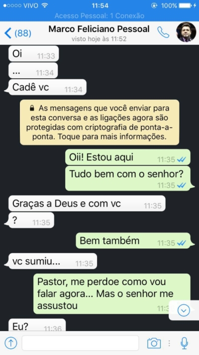 Confira abaixo algumas imagens recuperadas das conversas de WhatsApp entre a jovem e o pastor: