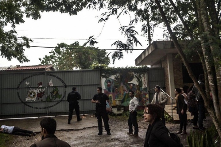 Os policiais pularam o muro e a janela de recepção do prédio e entraram atirando para cima. Foram utilizadas munições letais. Duas pessoas foram detidas na escola.