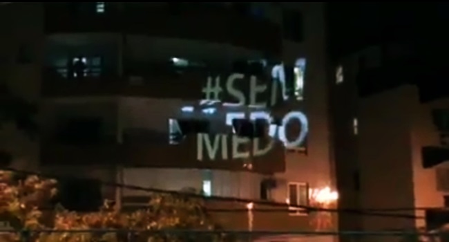 Vídeos com um carro de som circulando com a música e projetando nas paredes dos prédios a hastag #semmedo estão sendo compartilhados desde o início da madrugada desta quinta-feira. A reação das pessoas nos prédios e casas foi aplaudir a iniciativa. “Irado”, disse uma moradora. “O mais bonito do dia, talvez da semana”, disse outra internauta.