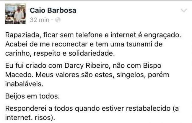 Abaixo, leia a íntegra do texto que causou a demissão de Caio Barbosa: