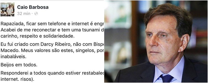 Crivella divulgou nota para dizer que não mandou demitir Caio: “Jamais faria isso. Respeito os profissionais de comunicação e a liberdade de imprensa”.