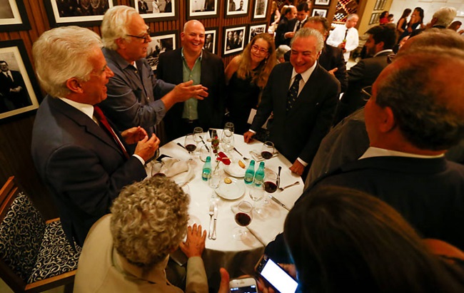 Jantar de Noblat reuniu os donos do poder: caciques da política, do judiciário e da mídia. Brindavam e trocavam sorrisos o presidente Michel Temer e Gilmar Mendes, o homem que irá julgá-lo no TSE. Ministros, ex-ministros, réus, investigados. Todos confraternizaram. Confira os detalhes