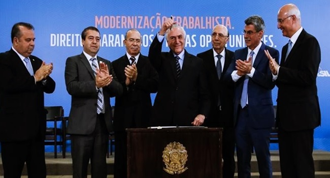 Segundo Temer, “modernizar a legislação trabalhista era uma dessas demandas sobre as quais todos falavam, mas ninguém teve a coragem e a ousadia” de fazer. Ao final do discurso, fez previsões otimistas quanto ao futuro da sua presidência. “Se fizemos tudo isso em 14 meses, imaginem o que faremos com mais um ano e meio de governo.”