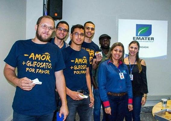 Estudantes da Escola de Agronomia da UFG chocam ao vestir camisa "menos amor e mais agrotóxico". Universitários brasileiros debocham do fato de pesticida louvado por eles ser apontado por diversas pesquisas no mundo como causador de câncer
