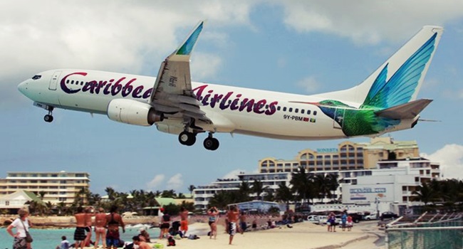 A ilha de Saint Martin é famosa por duas coisas: o mar muito azul, e a praia de Maho, que é literalmente colada ao aeroporto local.