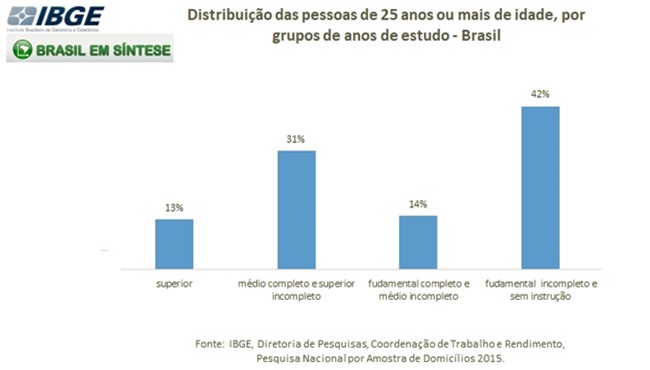Por ela, em extremo, a população com instrução de nível médio e superior ficaria em 44%.