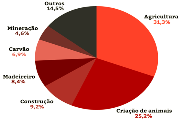 Agricultura é o setor econômico que tem mais patrões no cadastro (31%), a maior parte em lavouras de café (14% do total de empregadores). Em seguida, está a criação de animais (25%), com predominância do gado para corte (19%). Em terceiro lugar, empatados, estão a construção (8%) e o setor madeireiro (8%).
