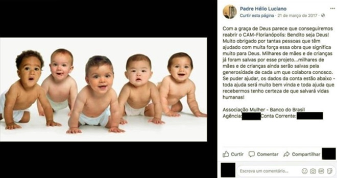 Hélio Tadeu Luciano de Oliveira é um padre militante pró-vida que, segundo o site do Convívio Emaús (“convívio” é o nome dado a uma atividade de formação organizada pelo Opus Dei que abrange um leque variado de formatos e finalidades), se formou em odontologia e teve sua vocação despertada ainda na faculdade. Fez parte do Movimento Jovens de Emaús em Florianópolis (SC) e, em 2004, foi estudar filosofia e teologia na Espanha, com bolsa integral, no Seminário Internacional de Bidasoa e na Universidade de Navarra, ambos confiados à prelazia do Opus Dei. Logo recebeu a sua ordenação diaconal na Paróquia San Nicolás, em Pamplona, Espanha, e depois retornou à Europa para continuar o doutorado em bioética em Roma. Em sua página pública no Facebook, é possível achar posts contra a “ideologia de gênero”, dezenas de mensagens e imagens contra o aborto (inclusive em casos de estupro) e até fotos de um dia de produção – feita por jovens de uma paróquia de Florianópolis – de fetos de borracha (frequentemente utilizados em manifestações pró-vida ou arremessados contra manifestantes pró-descriminalização do aborto). Também segundo essa entrevista de 2013, ele foi da arquidiocese de Florianópolis e, a pedido do então arcebispo da região, dom Murilo Krieger, empenhou-se nos estudos sobre bioética. É difícil dizer mais sobre o padre Hélio porque, após insistentes pedidos de entrevista por e-mail sem resposta e uma ligação à Arquidiocese de Florianópolis solicitando outro contato, fui informada por um funcionário de que esse era um projeto sigiloso e por isso ele ou outra pessoa da Igreja não falariam a respeito. Na página do Facebook, é possível constatar também seu envolvimento com a Associação Mulher, pois diversos de seus posts e vídeos pedem doações em dinheiro para ajudar a salvar “milhões de crianças do aborto, a sociedade, as mulheres”. Sua ligação com o CAM (aquele cujo e-mail constava no domínio do site do qual falaremos adiante) também aparece em sua página em posts como: “Hoje celebramos a São Josemaría Escrivá de Balaguer, o Fundador do Opus Dei. Recebi hoje muitas graças especiais e estou convencido de que foi pela intercessão desse santo sacerdote. Dentre essas graças está a reabertura do CAM Florianópolis e o crescimento na missão e no amor – quase palpável – de algumas pessoas amigas que confiam cada vez mais em Deus. São Josemaría – rogai por nós!”. Esse site mostra-o ainda como sacerdote da Rede Latino-Americana de CAMs e diz que ele esteve nos últimos encontros representando o Brasil.