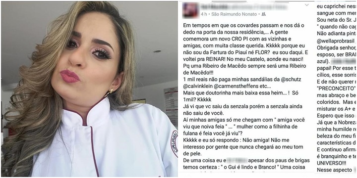 “Ela confirmou que foi ela mesmo quem divulgou aquelas mensagens preconceituosas e odiosas. A prisão foi decretada porque ela estava foragida, não atendia a nenhum chamamento da polícia. Diligenciamos aqui na capital onde ela tinha uns endereços. Antes de ela ser odontóloga, era cabeleireira. Não foi muito difícil encontrá-la”, assinalou o delegado.