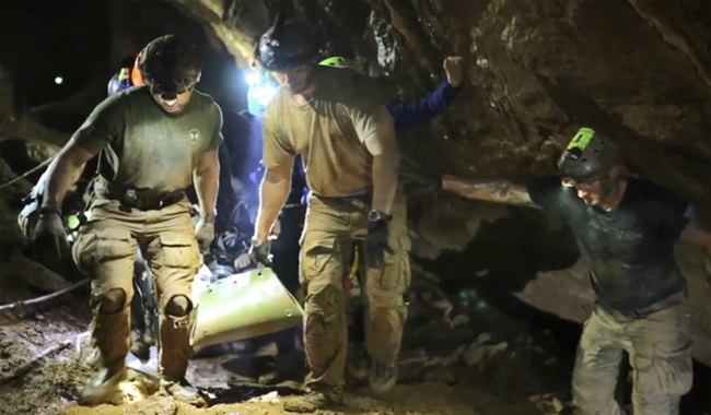 Entre os 13 principais socorristas estão os britânicos Stanton e John Volanthen, que são os que encontraram os garotos a quatro quilômetros da entrada da caverna. Nesse momento, o nível da água era muito alto, e o grupo aguardava sobre uma rocha cercada de água.