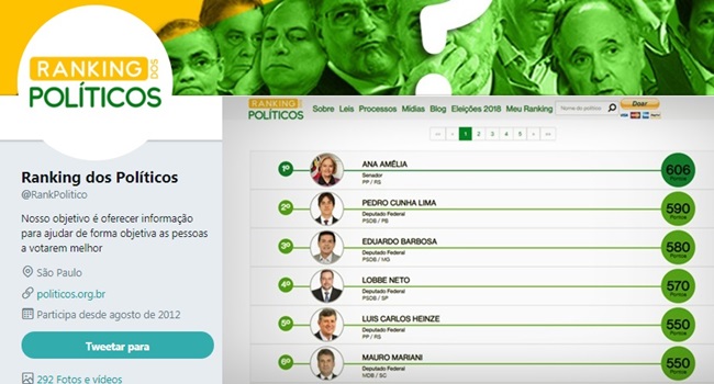 Há seis anos, tem circulado na internet um conto do vigário chamado Ranking dos Políticos. É um site que ranqueia os congressistas eleitos para a Câmara e o Senado e virou referência em avaliação da atuação parlamentar de candidatos em períodos eleitorais. A página é bonita, as ferramentas são excelentes, fáceis de usar, e tem uma boa base de dados sobre a atuação dos políticos. É possível, por exemplo, consultar os processos judiciais de todos os parlamentares e filtrar por partido ou estado. O site passa a impressão de credibilidade e independência, mas a sua principal função, o ranking que classifica os parlamentares do melhor para o pior, não passa de uma armadilha liberal para a massa incauta de eleitores que busca informações na internet para escolher seu candidato.
