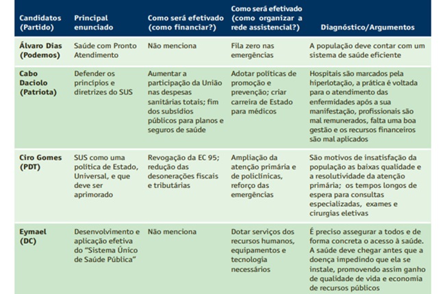 Outro aspecto importante, segundo os autores, é que a saúde não ocupa lugar central nas plataformas de governo dos candidatos à Presidência neste ano, quando a insatisfação reiterada da população em relação à saúde “é matéria prima para rico e potente debate sobre o tema“.