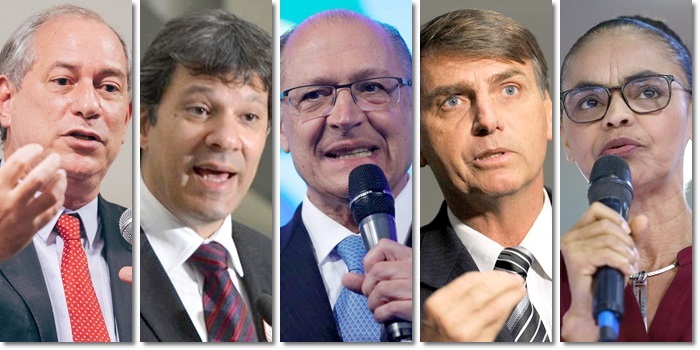 Os cinco primeiros colocados nas pesquisas eleitorais: Jair Bolsonaro, Fernando Haddad, Ciro Gomes, Marina Silva e Geraldo Alckmin. Veja o que consta no plano de governo de cada um em relação à política internacional e às relações exteriores para o próximo governo