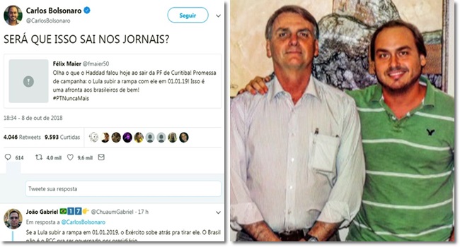 — Carlos Bolsonaro (@CarlosBolsonaro) 8 de outubro de 2018