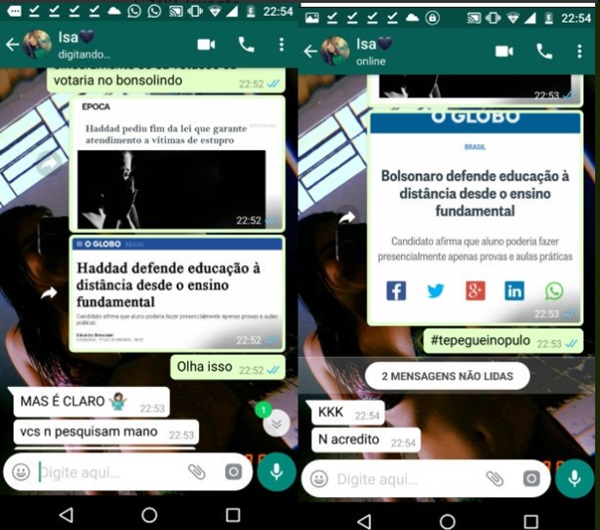 A ideia é enviar para fãs do Bolsonaro uma montagem com uma notícia que supostamente é sobre algo condenável que Fernando Haddad fez; registrar a reação da pessoa e depois revelar que a atitude na verdade foi de Jair Bolsonaro.