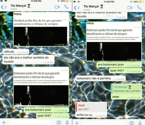 1- Mande a 1ª imagem do tweet para um eleitor de Bolsonaro ou grupo da família