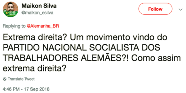 Recentemente, a Embaixada da Alemanha publicou um vídeo explicando como o nazismo era tratado entre os alemães, e recebeu uma enxurrada de comentários de brasileiros. Os internautas afirmavam que o nazismo era ligado às ideologias de esquerda e contestavam o holocausto.