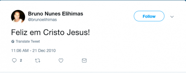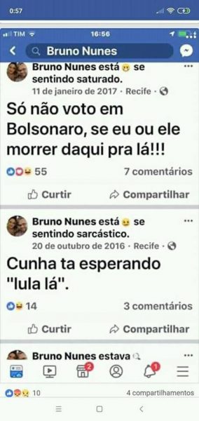Bruno Elihimas já foi preso no passado por receptação de carro roubado e venda de anabolizantes, chegando a ser conduzido ao Centro de Observação e Triagem Everardo Luna, COTEL, em Abreu e Lima, mas teve alvará de soltura por liberdade provisória. Nas redes sociais, Bruno fez campanha para Bolsonaro e aparece sendo batizado por um pastor evangélico.