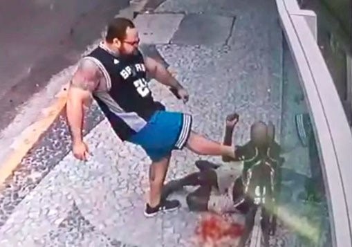 Nas imagens amplamente divulgadas pelas redes sociais e pelo WhatsApp, Bruno aparece dando um chute nas costas do idoso, que cai no chão e, em seguida, é atingido com diversos socos e chutes no rosto.