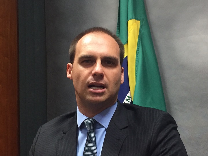 A declaração acima é do deputado federal Eduardo Bolsonaro (PSL), filho de Jair Bolsonaro, e está registrada em vídeo. O conteúdo viralizou nas redes sociais nesta quarta-feira (27) [ver abaixo].
