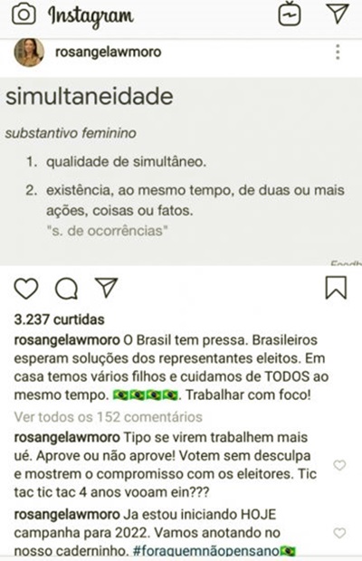 Leia também: Rosângela Moro apaga post em que fazia apelo aos críticos de Bolsonaro