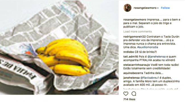 “Imprensa… para o bem e para o mal. Separam o joio do trigo e publicam o joio”, ensinou antes de apertar o delete, num post ilustrado com a foto de um cacho de bananas sobre uma edição da Folha.