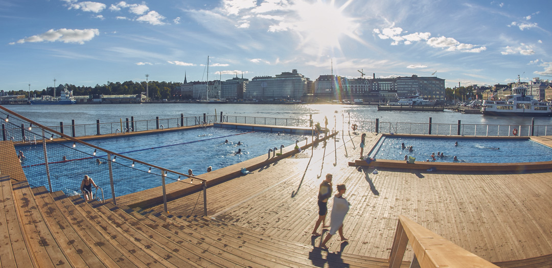 Estou na Finlândia, Helsinki. Férias, a caminho da Rússia. É verão. Eu, vindo do Brasil, o país dos verões, vou à uma das principais piscinas coletivas da cidade, bem no centro, em frente ao porto. Pago a taxa, ganho uma toalha e uma pulseira.