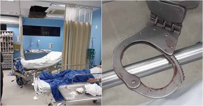 Lutador usa sangue para se soltar de algema, quebra teto de hospital e pula janela