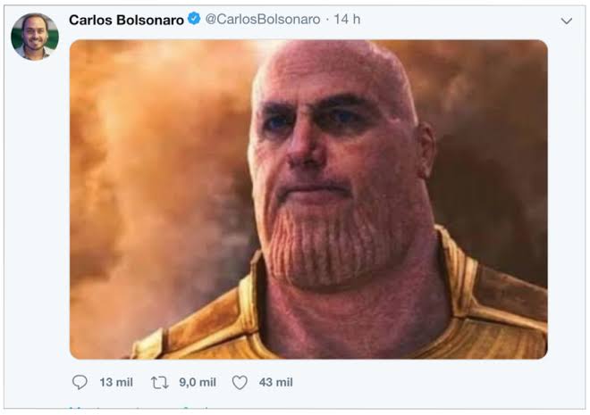 Thanos, que mata a própria filha, é derrotado no fim por um cara de vermelho. Os internautas não perdoaram a postagem do filho do presidente. “Será que a soltura de Lula mexeu tanto assim com o emocional do vereador?”, questionou um usuário.