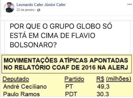 Nas redes sociais, Leonardo Cafer Júnior se comporta como um homem de família que tem aversão à corrupção. Ele se declara apoiador de Jair Bolsonaro e da Operação Lava Jato. Em uma das publicações, o homem chega a defender Flávio Bolsonaro.