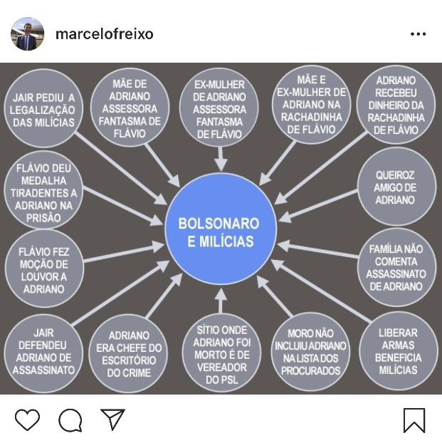 Uma relação muito bem desenhada pelo deputado Marcelo Freixo (Psol-RJ), em um gráfico que relembra o famigerado powerpoint da turma da Lava Jato, quando atacaram o ex-presidente Luiz Inácio Lula da Silva.