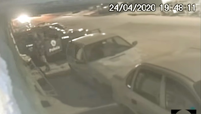 Um minuto mais tarde, o trio retorna de onde veio sem ninguém abordado. Passam atrás do equipamento que registrou a ação. Às 19h09, a gravação da câmera começa a mudar de direção, quando a câmera é manipulada por um dos policiais. A pessoa que a segura estava na mesma posição para onde os PMs voltaram depois de vistoriar o local.