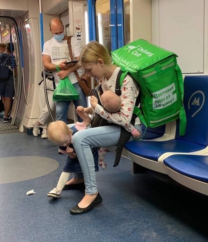 A foto de uma mãe carregando as duas filhas para o trabalho viralizou no mundo nesta semana. A mulher que aparece nas imagens é a russa Lada Koroleva, de 19 anos. O registro foi feito dentro do metrô em Moscou.