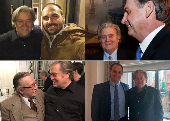 Em março do mesmo ano, Bannon encontrou-se com o presidente Bolsonaro em um evento na embaixada do Brasil nos EUA definido pelo Palácio do Planalto como “jantar com formadores de opinião”, em Washington. Bannon sentou-se do lado esquerdo de Bolsonaro – à direita estava o escritor Olavo de Carvalho.