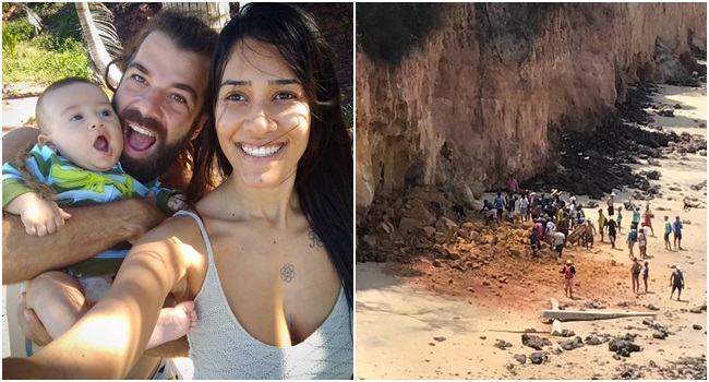 Stella Souza, Hugo Mendes Pereira e o bebê do casal de 7 meses, Sol Mendes, morreram soterrados nesta terça-feira (17) após o desabamento de uma falésia na Praia de Pipa (RN). O cachorro da família também morreu.