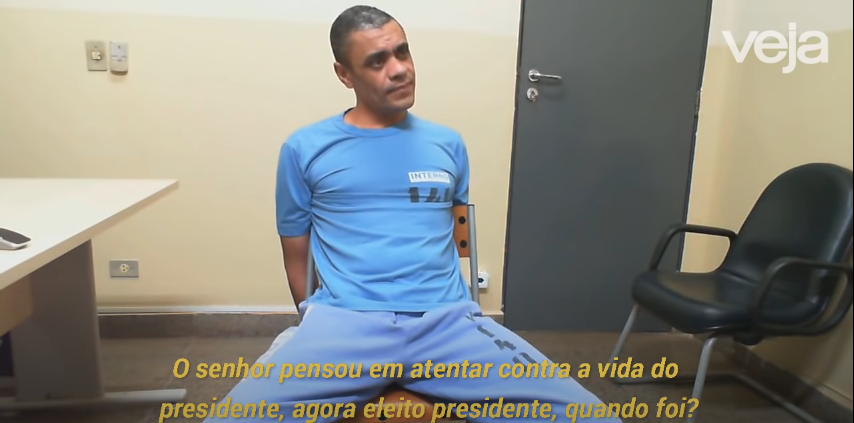 O vídeo com o depoimento de Adélio, hoje internado compulsoriamente por transtornos mentais, foi feito pela Polícia Federal e divulgado pelo site da revista Veja (assista abaixo).